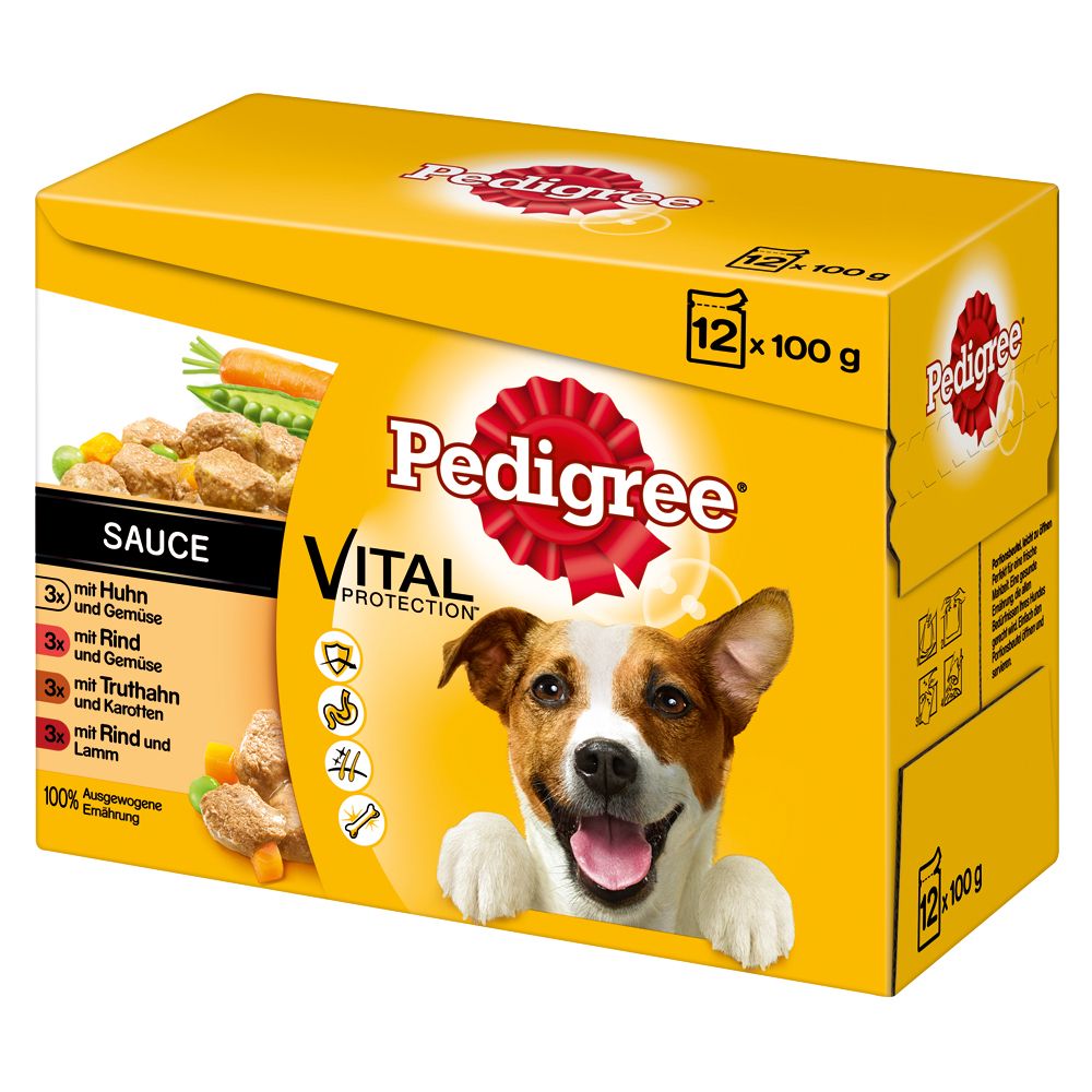 Pedigree hundefôr tilsvarer hunders naturlige matvaner. Pedigree er et komplettfôr for voksne hunder med utelukkende naturlige, ferske kjøttstykker fra varierte kjøttkilder. Pedigree inneholder ikke fargestoffer, sukker eller soya. Følgende sorter er tilgjengelige: Junior: Balansert våtfôr for valper i lekker gelé, blanding av fire ulike sorter, med kjøtt, vitaminer fiber, uten sukker, smakfullt og godt tolerert. Senior 7+: Våtfôr til eldre hunder, 4 forskjellige smaksretninger: kylling, okse, fjærkre og lam, 100% balansert med kalsium, uten sukker og kunstige farge- smaks- og konserveringsstoffer Multipakke i saus/gele/postei: Utsøkt våtfôr i deilig saus, patè eller gelè for voksne hunder, ulike smaksvarianter, 100% balansert, uten tilsatt sukker, uten kunstige fargestoffer, smaksforsterkere konserveringsmidler. Multipakken “Junior” inneholder: 48 x 100 g Kylling ris