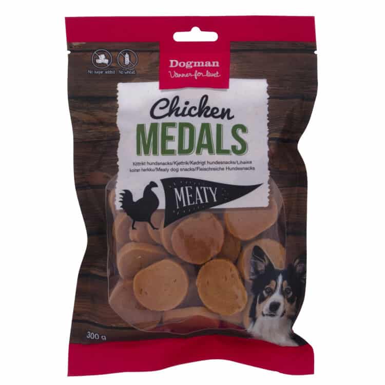 Smakfullt hundegodt av kylling. Kommer i perfekte belønningsbiter. Hvetefri og uten tilsatt sukker. Praktisk og gjenlukkbar forpakning. Laget av klasse A kylling. Kyllingmedaljong. NOK 149.00 Mer informasjon