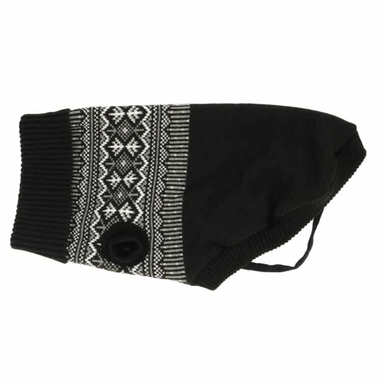 Fin genser med fint mønster og en nydelig krage. Genseren har korte mansjetter rundt forbena og stropper på bakbenene for å holde genseren på plass. Genseren er lagd av 100% akryl, håndvask 30 grader. NOK 125.30 Mer informasjon