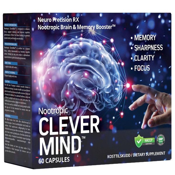 Nootropic CleverMind™ er utviklet for å skjerpe fokus, støtte hukommelse og forbedre kognitiv ytelse. Dette produktet kan bidra til å optimalisere mental klarhet og øke konsentrasjonsevnen. Nootropic CleverMind™ inneholder hele 13 aktive ingredienser, en blanding av ekstraker, vitaminer og mineraler som kan gjøre deg skarpere og mer fokusert! Ekstrakter av Ginkgo Biloba, Bacopa Monnieri og Koreansk Ginseng er alle etterspurte…