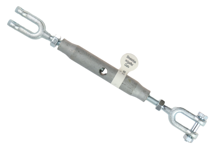 Materiale: Varmgalvanisert stål Strekkfisk gaffel/gaffelGodstykkelse gjengeparti: 6mmTykkelse låsebolt:           6,5mmMax lengde:                   260mmMin.lengde:                   180mmÅpning gaffel:                   7mmArbeidslast kg:                    200Bruddstyrke kg:                1000 Pris: 111,- nok Gammel pris: 111,- nok Se beste pris på produktet   Se også andre produkter