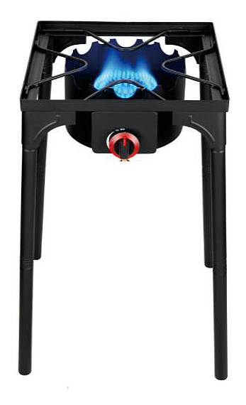 Stabil og god gassbrenner på stativ, for bruk utendørs med husholdningsflasker (Propan/LPG 2kg/5kg/10kg/11kg). Brenneren i støpejern har en trinnløst justerbar effekt opp til 3800w (13000BTU).Piezo elektronisk tenning for enkel opptenning. Det følger med 4 stk avtagbare ben + 4 mellomstykker. Du kan derfor enkelt velge arbeidshøyde v/bruk av enten ett ben (48cm) eller ben + mellomstykke (78cm)Stativet…