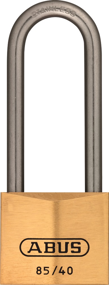 Låsekropp i solid messingHerdet ramme med NANO PROTECT™-belegg for svært høy korrosjonsbeskyttelseParasentrisk nøkkelprofil for økt beskyttelse mot manipulasjonInnvendige deler laget av korrosjonsfrie materialer av høy kvalitet85IB: Egnet for bruk i sjø- og havneområderFor sikring av vesker, kofferter, kister, bokser, dører, porter, skap, kommoder, verktøykasser, kjellervinduer, skur, koblingsutstyr, bommer, osv.Utstyrt med høy bøyle (HB): 40 mm….