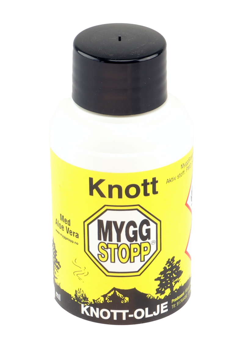 MYGGSTOPP – Knottolje 50 ml med ALOE VERA   Denne varianten inneholder oljer, som gjør den svært lett å smøre ut.  MYGGSTOPP-Knottolje danner en tett film på huden. Dette sikrer 100 % kort- og langtidsbeskyttelse. En liten hensiktsmessig flaske , som du lett kan ha med deg på alle slags turer i fjellet, i skog…