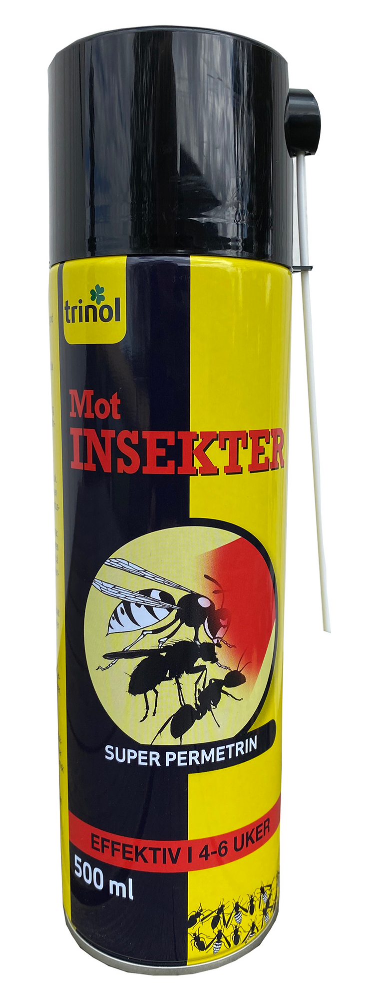 Super Permetrin insektspray      Mest solgte spray mot veps,fluer og andre flyvende og krypende insekter.    Produktdetaljer Leveres med forlengelsesdyse, dreper alle form for insekter raskt. For bekjempelse av bl.a. maur, veps, fluer, edderkopper, striplet borbille, husbukk, kakerlakker o.l 4-6 ukers virksomhetstid. 500 ml.   Aktiv Substans: Permetrin 9,5 g/l   Pris: 193,- nok Gammel…