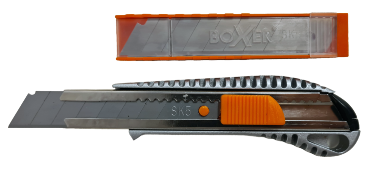 Hobby/tapetkniv i sinklegering av meget høy kvalitet. 18mm knivblad i SK5 stål. Leveres med 10stk ekstra knivblad, i plastetui.Vekt: 140gr. Lengde: 160mmReserve 18mm SK5 knivblad: 400126 Pris: 119,- nok Gammel pris: 119,- nok Se beste pris på produktet Se også andre produkter