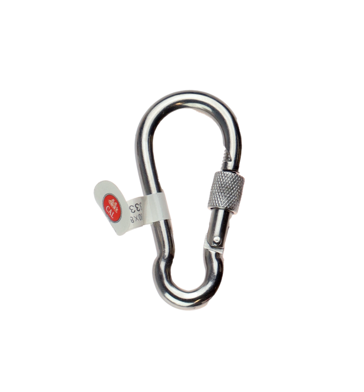 Materiale: AISI316/A4 Syrefast stål Godstykkelse: 8mm Dim: 80x40mm Maks åpning:9mm Øye:12mm Arbeidslast: 218kg Bruddstyrke: 436kgKalles også karabinkrok eller Brannmannskrok Pris: 80,- nok Gammel pris: 80,- nok Se beste pris på produktet Se også andre produkter