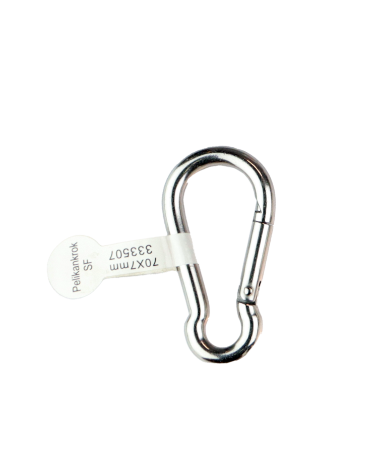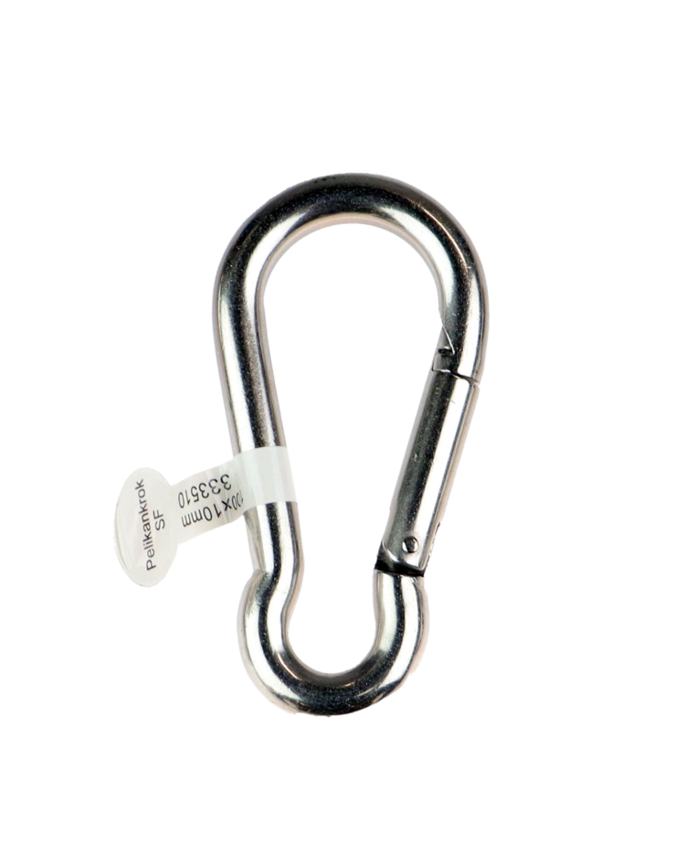 Materiale: AISI316/A4 Syrefast stål Godstykkelse: 10mm Dim: 100x50mm Maks åpning11mm Øye: 15mm Arbeidslast: 288kg Bruddstyrke: 576kgKalles også karabinkrok eller Brannmannskrok Pris: 114,- nok Gammel pris: 114,- nok Se beste pris på produktet Se også andre produkter