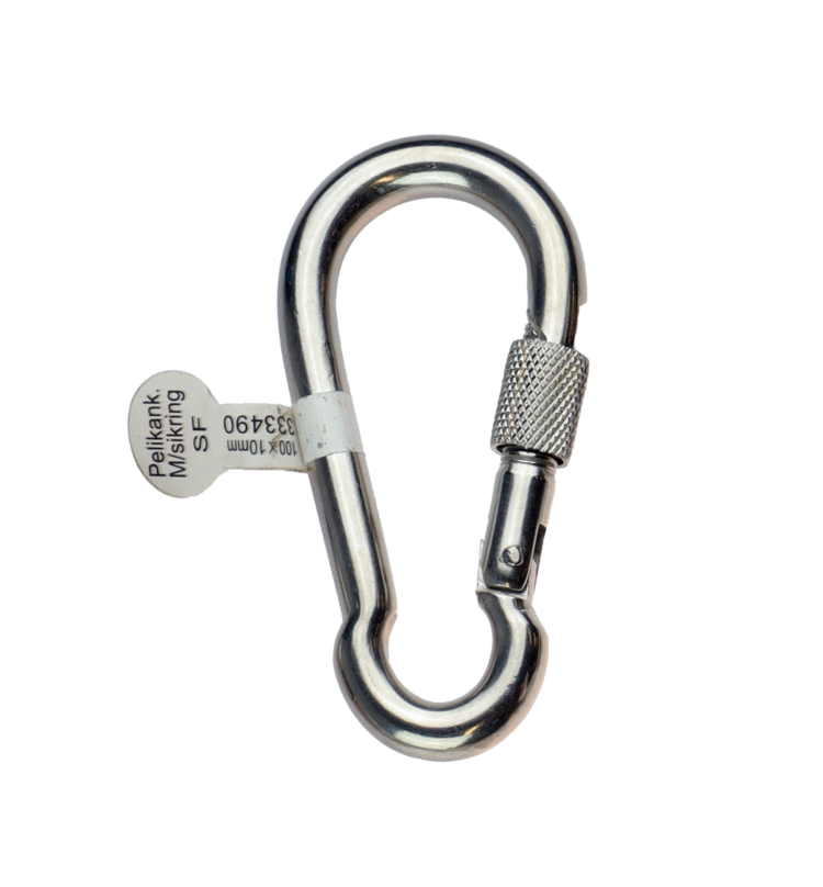 Materiale: AISI316/A4 Syrefast stålGodstykkelse: 5mmDim: 50x25mmMaks åpning:7mmØye: 8mmArbeidslast: 143kgBruddstyrke: 286kgKalles også karabinkrok eller Brannmannskrok Pris: 26,- nok Gammel pris: 26,- nok Se beste pris på produktet Se også andre produkter