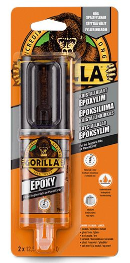 DEN KRYSTALLKLARE, TODELTE EPOXYEN SOM FYLLER SPREKKER.Gorilla Epoxy gir et sterkt, langvarig feste til reparasjoner både i hjemmet og på bilen. Den brukervennlige sprøyten påfører en lik mengde harpiks og herdemiddel. Når de blandes sammen, skapes et permanent, holdbart og vannbestandig feste.Den todelte Gorilla Epoxy-formelen til fylling av sprekker, herdes på 5 minutter og fester…