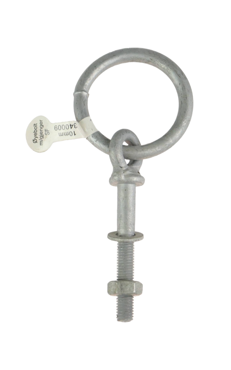 Materiale: Varmgalvanisert stålDiameter bolt 10mm Lengde (fra bunn av krave til der bolten begynner) 75mm Lengde gjengefelt 50mm Øye (gods x diameter) 8x13mm Ring(gods x diameter) 8x50mm Pris: 52,- nok Gammel pris: 52,- nok Se beste pris på produktet Se også andre produkter