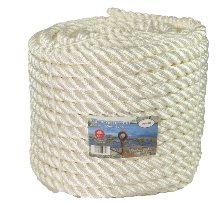 Tau Polyester – Hvit – 22 mm – 55m – Kveil
