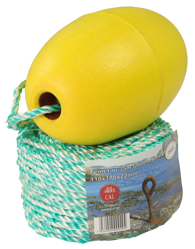 Tau for teiner og garn, 35m komplett med godt synlig flottør. Diam. 6mmDim. flottør: 110x170x22mm Pris: 193,- nok Gammel pris: 193,- nok Se beste pris på produktet Se også andre produkter