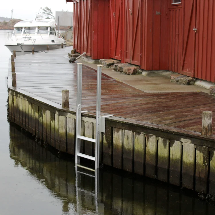6 trinns bryggetrapp / badestige. Vanger med godt gripetak, behagelige fottrinn. Kan "heises" opp, så den ikke står i vann hele tiden. Leveres med rette håndtak. Man kan også kjøpe en tilleggsmodul med fire ekstra trinn (118) cm. Bredde: 53cm Nedstikk fra bryggekant: 180cm Håndtak over bryggekant: 80cm Se video her NB! B-vare, noe riper…