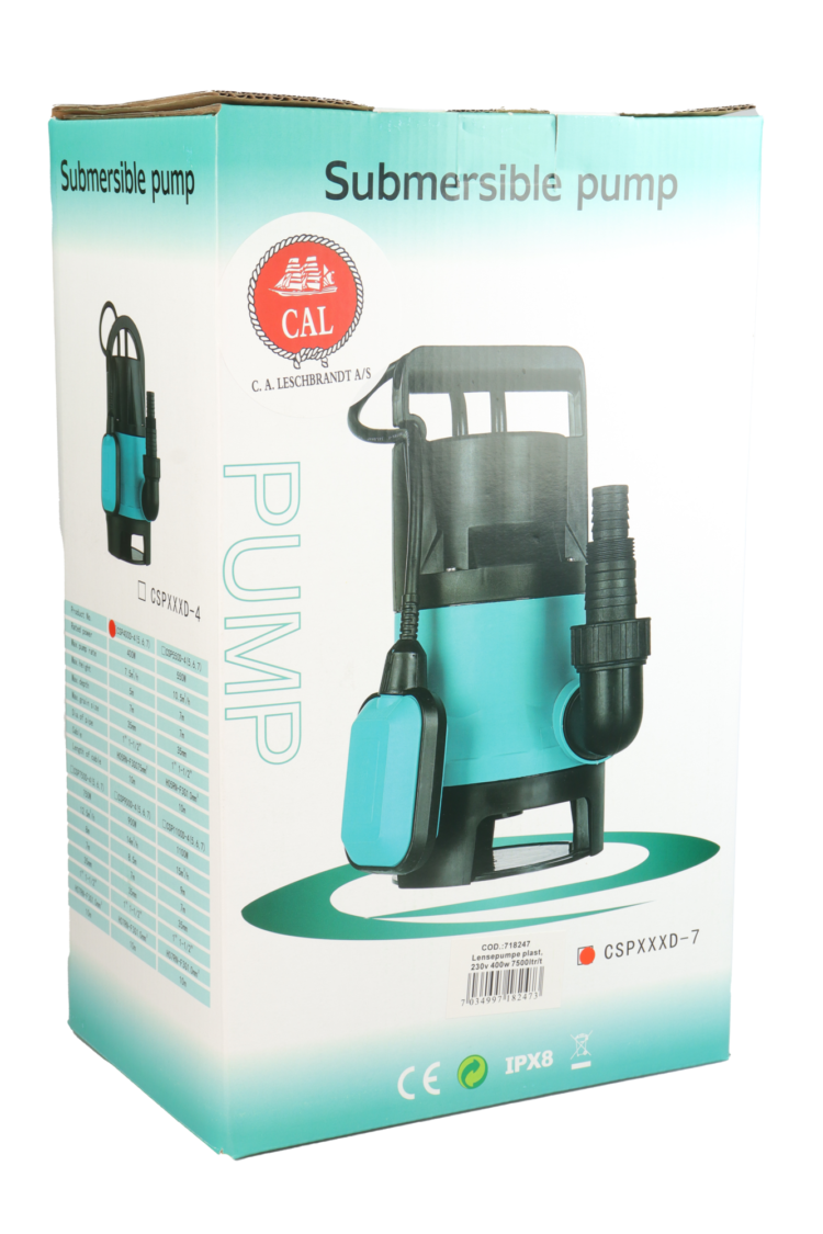 Lensepumpe med flottør, 220v Effekt: 750w Maks kapasitet: 12500 ltr/t Maks løftehøyde: 8 meter Slangetilkobling: 1", 11/4" og 11/2" Vekt: 5,2kg Meget kraftig konstruksjon gjør pumpen velegnet til lensing av båter, kjeller etc. For høyest kapasitet bruker du 1 1/2tommes slange. (Kutt da bort de to innsnevringene på 1 og 1 1/4"). Pris: 1598,- nok Gammel pris:…