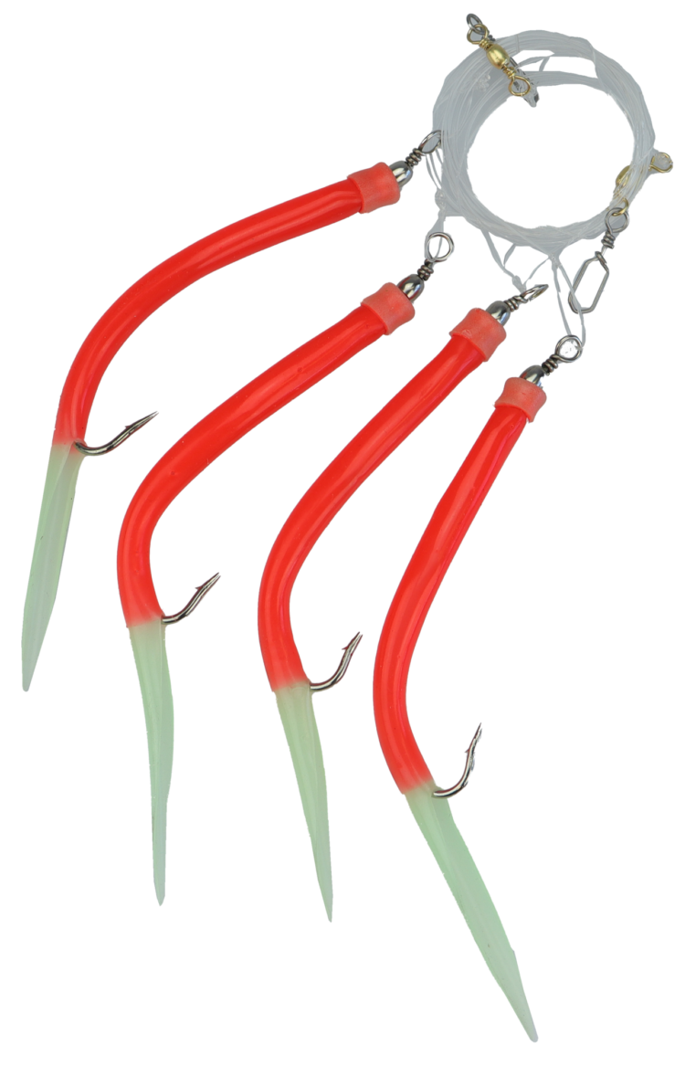 OSEAN Kroksett med 4 røde gummimakk 6/0 m/fluoriserende tuppSene: 0,70mm30 cm mellom krokeneTotal lengde: 150cmEgnet for fiske etter bla. sei, lyr og torsk Leveres med svivel i topp og bunn, samt snapsvivel for enkel montering. Pris: 107,- nok Gammel pris: 107,- nok Se beste pris på produktet Se også andre produkter