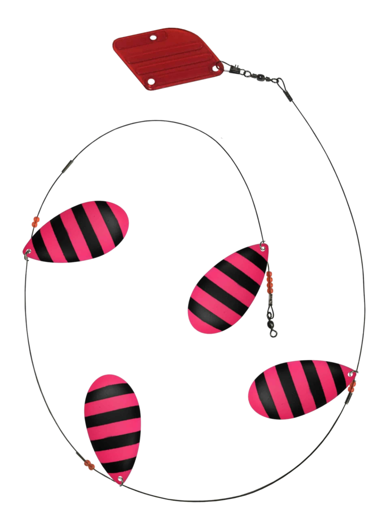 Tasmanian Devil Cow Bell er et markdrag som simulerer en fiskestim. Denne trolling riggen er klassisk utformet med blader, eller skjeer, som med spenstige farger og gode bevegelser gir blinkende effekt, og lurer fisken til hugg. Cow Bell er ca 90cm lang, og består av en wire med hovedskje, 4 spinnerskjeer, og i enden ferster…