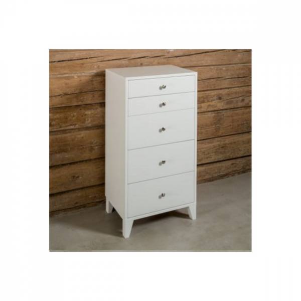 Tessa 5-Skuffer Kommode Remmen Møbelfabrikk Nesten ferdigmontert møbel fra Norske Remmen Møbelfabrikk.Kun knotter og bein må settes på.Finnes også som 3 skuffers kommode. Da heter den Tessa 3-Skuffer. Produktet har følgende mål:Bredde: 57cmDybde: 41cmHøyde: 108cm Velg mellom disse fargene: SvartKvitGrå Pris: 6295,- nok Se beste pris Andre produkter på delcos