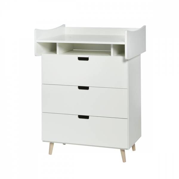 Pan Stellebord med kommodefra Danske Manis-H Lekkert stellebord fra Manis-H.3 dype skuffer med solide skinner. Når man ikke har behov for stellebordet lengere, så kan man løfte av toppen, og fortsette å bruke denne som en god kommode.Valgfri montering av 4 stk trebein.  Produktet består av disse 2 produktene:Manis-H PusletoppManis-H Kommode 3 Skuffer Bred Tekstilene vist på bildet følger…