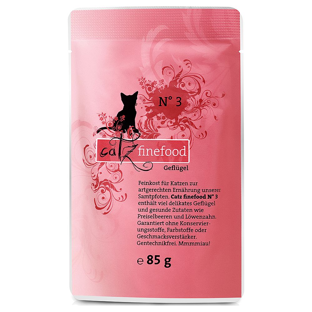 Kattens vitalitet og sunnhet avhenger i stor grad av kosten. catz finefood står for naturlig, balansert katteernæring. De enkelte oppskriftene simulerer kattens naturlige ernæring og inneholder alle viktige næringsstoffer og proteiner som katten fra naturen av trenger. Fôret inneholder ikke kornprodukter som katter har vanskelig for å fordøye og omsette. Kun det beste kjøtt og innvoller fra pålitelige, tyske landbruk, samt fisk fra bærekraftig fiske i åpent hav benyttes i produksjonen av dette fôret. De førsteklasses, ferske råvarene kaldfylles etter nøye kontroll og godkjennelse. Dette sikrer maksimal kvalitet og sikkerhet. Skånsom dampkoking sørger for at alle viktige næringsstoffer og essensielle fettsyrer bevares. Dette fôret tilberedes utelukkende i Tyskland. catz finefood er lett fordøyelig og godt tolerert og er derfor også godt egnet for ømfintlige eller allergiske katter. catz finefood lover: Fremstilt utelukkende i Tyskland Garantert uten genmanipulasjon Uten tilsatte kornprodukter Godt tolerert og svært lett fordøyelig Svært høy kjøtt- og fiskeandel Lav andel frukt og grønnsaker Kjøtt og innvoller kun av beste næringsmiddelkvalitet fra tyske landbruk Fisk fra fritt og bærekraftig fiske Livsviktig taurin som fremmer hjertemuskelens funksjon og synsevnen Rikt på vitaminer for vitalitet Oppskriftene fyller kattens naturlige ernæringsbehov Detaljert undersøkelse og veterinærmedisinsk kontroll av råvarene før bearbeidelse Kaldfylling og skånsom dampkoking som bevarer nærmest alle næringsstoffer og essensielle fettsyrer Utvklet i nært samarbeid med ernæringsforskere og dyreleger catz finefood inneholder garantert ikke: Slaktavfall Beinmel Proteinerstatning som soya Kornprodukter Kunstige fargestoffer Bindestoffer Kunstig aroma Konserveringsmidler
