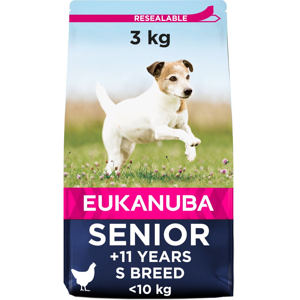 Caring Senior Small Breed kylling sørger for en optimal kroppstilstand for små hunder i en alder fra 11 år og legger grunnsteinen for en sunn aldring. Utviklet av eksperter og veterinærer, anbefalt av oppdrettere: de unike formlene til Eukanuba Life Stage-produktene sørger for tilpassede ernæringsløsninger for hver fase av hundens liv. Rikt på fjærkrekjøtt, inkludert 15% fersk kylling, er fôret spesielt velsmakende og gir animalske proteiner av høy kvalitet. I tillegg inneholder fôret en rekke naturlige næringsstoffer som fremmer trivsel og livskvalitet hos din firebente venn i godt voksen alder. Den 6-kantede krokett-formen sammen med den spesielle DentaDefense-formelen støtter rene tenner og en sunn tannhelse. Glukosamin og kondroitin favoriserer smidige ledd. Sammen med kalsium, som styrker beinbygningen, kan de fremme mobiliteten til eldre dyr. I tillegg fremmer umettede omega-3 og omega-6 fettsyrer en glatt hud og en skinnende pels. For å trekke til seg alle næringsstoffer har Eukanuba Caring Senior Small Breed blitt forsynt med verdifull fiber og prebiotika FOS og MOS. De kan regulere tarmfloraen og fremme en balansert fordøyelse. Et perfekt skreddersydd tørrfôr som oppfyller de høyeste kvalitetsstandardene, og effektivt støtter din lille eldre hunds vitalitet! Eukanuba Caring Senior Small Breed kylling i overblikk: Balansert tørrfôr til hunder av små raser ( 10 kg) fra 11 år Life Stage oppskrift: tilpasset sammensetning, ideèll for hundens alder Optimal kroppstilstand: unik kombinasjon av vitaliserende ingredienser som støtter en sunn aldring Utviklet av eksperter: utviklet av ernæringseksperter og veterinærer, anbefalt av oppdrettere Høy andel kjøtt: med over 40% fjærkre, rik på høykvalitets animalske proteiner 16% fersk kylling: lett å fordøye og svært velsmakende Sunne tenner: takket være 6-kantede kroketter og DentaDefense-formel Smidige ledd: smidigheten støttes av glukosamin og chondroitin Med kalsium: for kraftig beinbygning Styrker forsvaret: antioksidantene Vitamin E og C kan øke immunforsvaret Sunn hud skinnende pels: takket være naturlige kilder til omega-3 -6 L-karnitin: kan øke stoffskiftet og fettforbrenningen, og bidrar til å opprettholde en optimal kroppsvekt Balansert fordøyelse: med spesialtilpasset fiberblanding, inkludert sukkerbetemasse og prebiotika FOS MOS, for optimal næringsopptak Balansert vitalstoff-miks: ideelt innhold av vitaminer, mineraler, sporstoffer og verdifulle planteekstrakter Med yucca: kan redusere lukt Uten: kunstige farger og aromaer samt GMOer Høy sikkerhet: fôret har blitt utsatt for mer enn 120 kvalitetskontroller Praktisk forpakning: gjenlukkbare glidelås poser Topp-produsent: Eukanuba har siden 1969 dedikert seg til forskning og utvikling av kvalitetsmat for kjæledyr og garanterer bruk av kun de beste ingrediensene