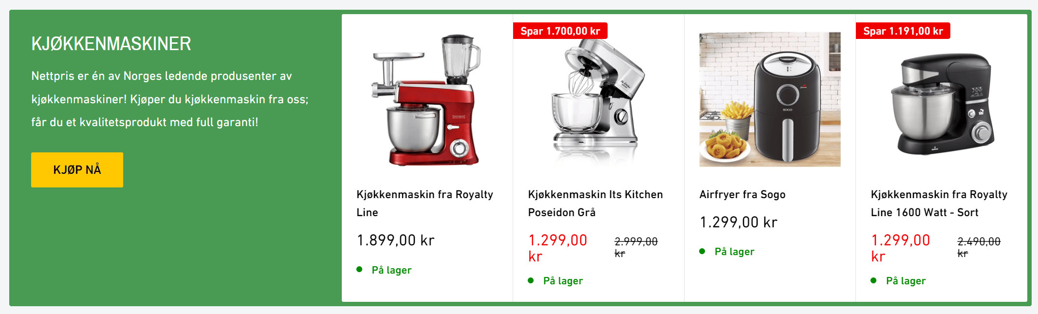 Nettpris tilbud på en mengde produkter i nettbutikken