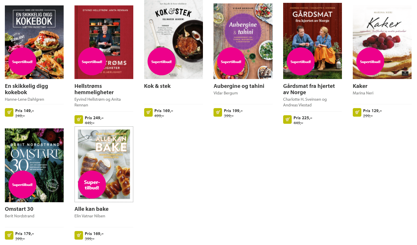 Salg på kokebøker – Supertilbud på flere kjente kokebøker.