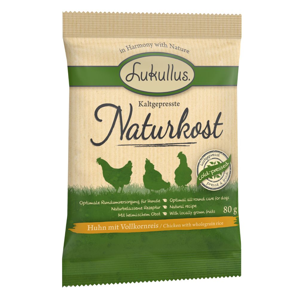 Lukullus kaldtpresset naturkost tilbyr en førsteklasses oppskrift for enhver hund. De deilige råvarene blir skånsomt kaldpresset. Derigjennom beholdes den naturlige smaken og de naturlige næringsstoffene på best mulig måte. For naturen leverer alt hva hunden din trenger. Lukullus stoler på kraft fra naturen. Den naturlige oppskriften til Lukullus tørrfôr består av kjærlig utvalgte råvarer. Slik kan lettfordøyelig kyllingkjøtt kombinert med fin frukt og verdifulle oljer forsørge hunden din helhetlig og optimalt. Fruktblandingen av lokale epler, pærer og nyper sørger for en spesiell smaksopplevelse. Avrundet med kaltpresset rapsolje kan Lukullus Naturkost bidra til blank pels og smidig hud. Lukullus Naturkost er glutenfritt og fritt for konserveringsmidler såvel som genteknisk endrede råvarer. Lukullus er optimalt avstemt mot hundens behov: I samklang med naturen: Naturær oppskrift med nøye utvalgte råvarer for din gourmethund Opprinnelig smak og naturlig næringsstoffinnhold takket være skånsom kaltpressemetode Førsteklasses proteiner ved særlig delikat kjøtt: lettfordøyelig kyllingkjøtt fritt for konserveringsmidler, genteknisk endrede råvarer og glutenfritt Høykvalitets fullfôr til voksne hunder av alle raser og størrelser Gunstig for tannrengjøringen takket være utvalgt pellets-form Produsert i Tyskland med mye kjærlighet Kaltpressing – hva er det? Anderledes enn ved vanlige produksjonsmetoder blir høye temperaturer og sterkt trykk ikke brukt ved kaltpressing. De verdifulle innholdsstoffene beholdes derved bedre og kan optimalt tas opp av hundens kropp. Lukullus stoler på naturens kraft. Hunden er den eneste vennen man kan kjøpe for penger. (Fritz Herdi) Oppbevares tørt og kjølig. Skal ikke fylles i lufttette beholdere. Da vi ønsker å fremstille produkene våre så naturlig som mulig, unngår vi konserveringsmidler såvel som farge- og lokkestoffer. Derfor har våre kaltpressede fôrsorter kun en holdbarhet på 8 måneder fra produksjonsdato. For avveksling sørger sorten Lukullus Veggie. Har dere prøvd den allerede?