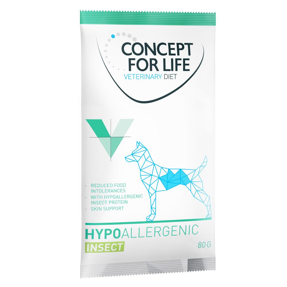 Concept for Life Veterinary Diet er et high-premium diettfòr spesielt utviklet for dyr med spesielle sykdommer og helseproblemer. Fòret kan brukes som en del av en terapeutisk diett i samråd med veterinær. Concept for Life Veterinary Diet – skreddersydd for hundens spesielle næringsbehov. Concept for Life Veterinary Diet Hypoallergenic Insect: Diettfôr for voksne hunder med overfølsomhet overfor fôr, ved dermatose og håravfall, insektsproteiner som eneste proteinkilde, passer som eliminasjonsdiett Concept for Life Veterinary Diet Gastro Intestinal: Diettfôr for voksne hunder ved utilstrekkelig fordøyelse, akutte resorpsjonsforstyrrelser, ved og etter akutt diarré, forhøyet elektrolyttandel, lavt fettinnhold Vår kvalitetsgaranti: Komplett diettfôr som er utviklet for din hunds spesielle behov Fôrkonsept basert på vitenskapelig grunnlag som kan støtte en veterinærsbehandling Lettfordøyelig fôr med beste tenkelige aksept takket være høykvalitative råvarer Produsert i Tyskland Spar penger på våre gunstige økonomipakker. Concept for Life Veterinary Diet tørrfôr 3 x 80 g ønsket sort – Test det gunstig nå! Mer informasjon og fôringsanbefalinger for de enkelte sortene finner du her: Hypoallergenic Insect Gastro Intestinal Generelle råd: Vi anbefaler at du konsulterer veterinær før du tar i bruk eller forlenger tiden som hunden får fôret. Når hunden får diettfôr, bør du gå la den gå regelmessig på kontroll hos veterinær. Hvis hundens helsetilstand forverres, må du øyeblikkelig kontakte veterinær. Vær oppmerksom på at tilbudet kun gjelder under artikelnummer 987146.