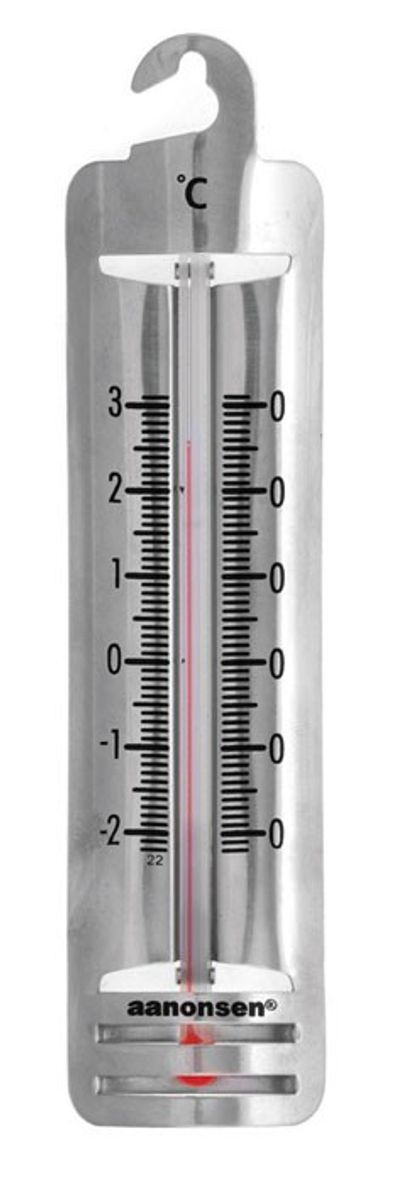 Termometer beregnet for kjøleskap og fryseboks. Laget i rustfritt stål. Leveres med sugekopp, og krok. Måleområde: -40°C – +40°CDim: 170x30mmAanonsen Pris: 59,- nok Gammel pris: 59,- nok Se beste pris på produktet Se også andre produkter