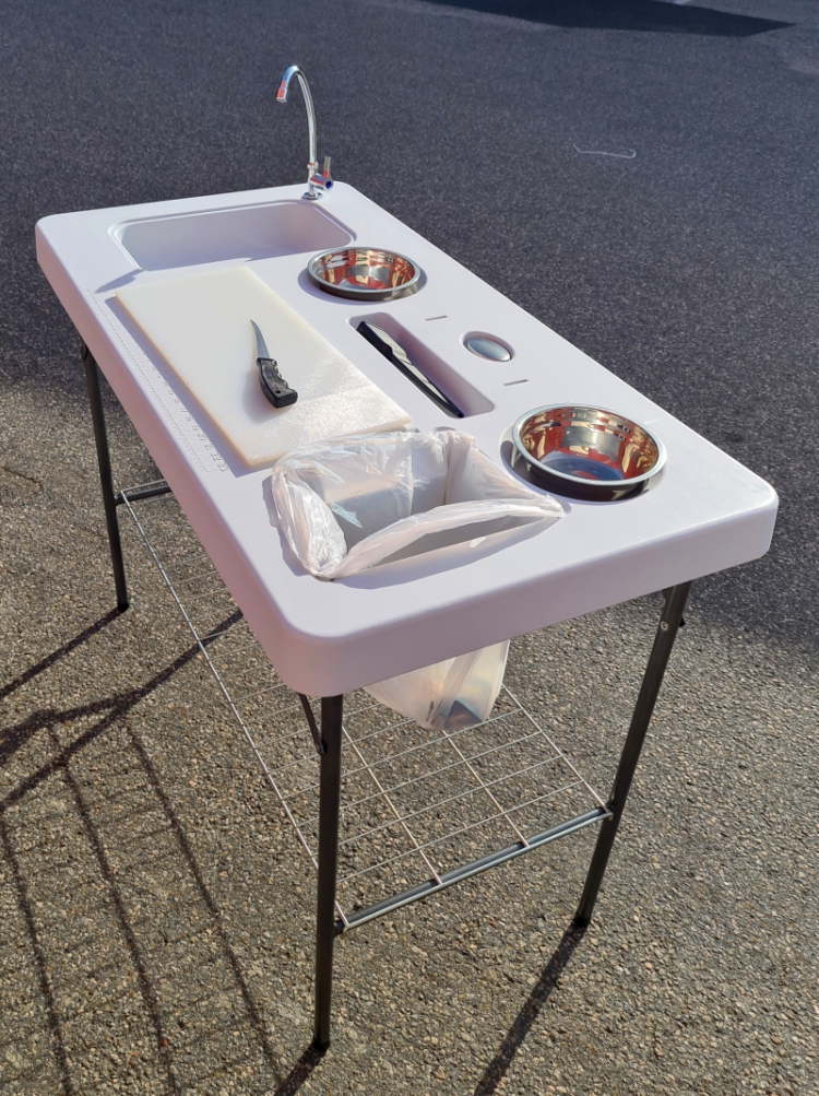 Bål Campingbord 90×53 cm i aluminium m/oppbevaringsrom og justerbar høyde Nytt campingbord som er sammenleggbart, og svært lett. Laget med ramme i aluminum (22x22mm) og overflate i 55x11mm aluminumslameller. Dette bordet har også et praktisk oppbevaringsrom laget i polyester, som monteres under bordplaten. Her kan du oppbevare f. eks matvarer, kokeutstyr eller annet. Bordet har 4 justerbare…