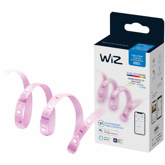 Utvid din WiZ full color strip (startsett selges separat) med denne énmeters forlengeren til maksimalt 10 meter. Du trenger bare feste den fleksible lysstripen til den overflaten du vil. Wi-Fi-tilkobling, 16 millioner farger og justerbar fra varmhvitt lys til dagslys.